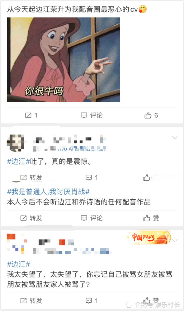 在边江微博下粉丝态度也是多样化,如热评第一是显然可见是讨厌肖战的网友,但也表示“我讨厌谁也是我的自由,我没必要强加给你”,热评第二则比较直接“哥,远离肖战,保太平”,略显无奈。