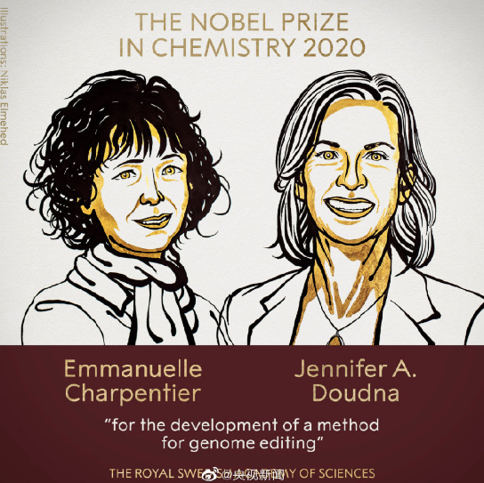 当地时间7日,瑞典皇家科学院常任秘书戈兰·汉松宣布,将2020年诺贝尔化学奖授予Emmanuelle Charpentier和Jennifer A. Doudna,表彰她们在“凭借开发基因组编辑方法”方面的贡献,两位获奖者将分享1000万瑞典克朗奖金(约合760万人民币)。