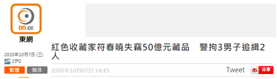 原标题:港媒:著名收藏家符春晓家中被盗 称失物总价值50亿港元