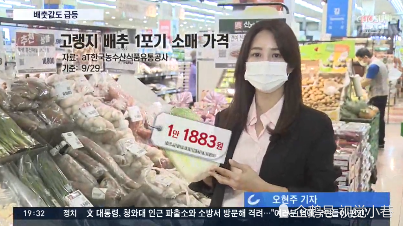 1公斤大葱4318韩元(25元人民币),1公斤小葱7623韩元(49元人民币),1公斤辣椒面3.2895万韩元(193元人民币),均比2019年上涨30%-70%。
