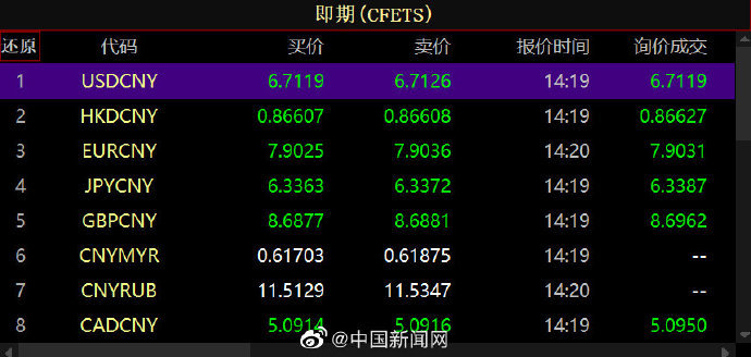 人民币升值【离岸人民币兑美元升破6.7关口】长假后的首个交易日,人民币汇率迎来大升值。中国外汇交易中心数据显示,10月9日,人民币对美元中间价报6.7796,较节前最后一个交易日上调305个基点。同日,在岸和离岸人民币对美元汇率均创下2019年4月以来新高。在岸人民币对美元汇率盘中最高飙升逾1000点,截至发稿,在岸人民币兑美元汇率报6.7119,较节前最后一个交易日升值超900个基点。长假期间,离岸人民币对美元汇率从9月末的6.78一线升值至6.74一线,9日亦大幅上扬,截至发稿,离岸人民币兑美元汇率报6.7050,盘中一度升破6.7关口。(谢艺观)