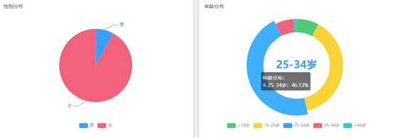 粉丝分析中,我们通过查看数据,还透露了一个重要信息,那就是种草商品与明星的契合度,张雨绮的粉丝大多为女性,25-34岁占比46.13%,从兴趣分布图上可以看到,她的粉丝关注的焦点为美妆、时尚、美食,符合粉丝调性的产品进行品牌笔记合作投放,种草的效果最佳。