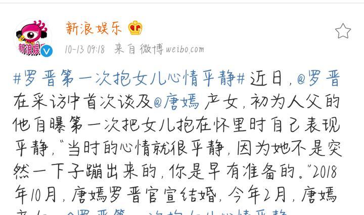 罗晋第一次抱女儿心情平静 罗晋自曝第一次抱女儿心情很平静,日常很少看手机,唐嫣表示女儿是个特别有主见的人,还被调侃两人可以玩猫捉老鼠的游戏。 圈内老顽童的
