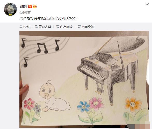 10月15日郎朗吉娜分别晒出一副画作,在画上有一位正在吃着奶嘴,穿着粉色婴儿服睫毛很长的小宝贝,在她身后还放着一架钢琴。两人写到:“兴奋地等待家庭音乐会的小听众。”正式官宣怀孕喜讯,两人在19年6月于法国举行浪漫婚礼,时隔一年吉娜就怀孕了,恭喜恭喜!