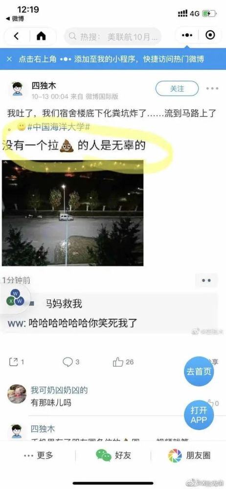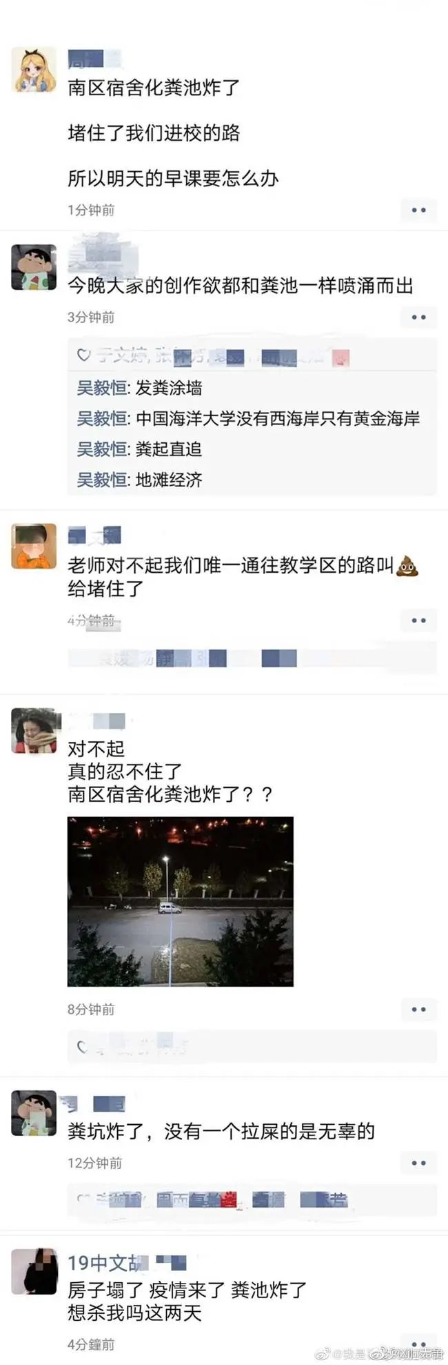 【中国海洋大学化粪池炸了,没有一个拉屎的人是无辜的!】10月12日的中国海洋大学出名了!现在一般大学上热搜,几乎都是各种大负面消息。没想到中国海洋大学是因为粪坑炸了上热搜。