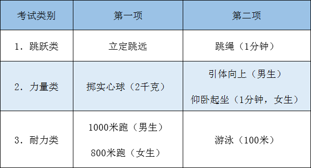 此前,杭州市中考(含体育)满分为600分(今年因疫情影响,体育中考取消)。其中,体育占30分,考试共设跳跃类、力量类、耐力类三个类别,学生需按三个考试类别分别选定一个项目(共三项)作为考试项目,每类满分为10分。