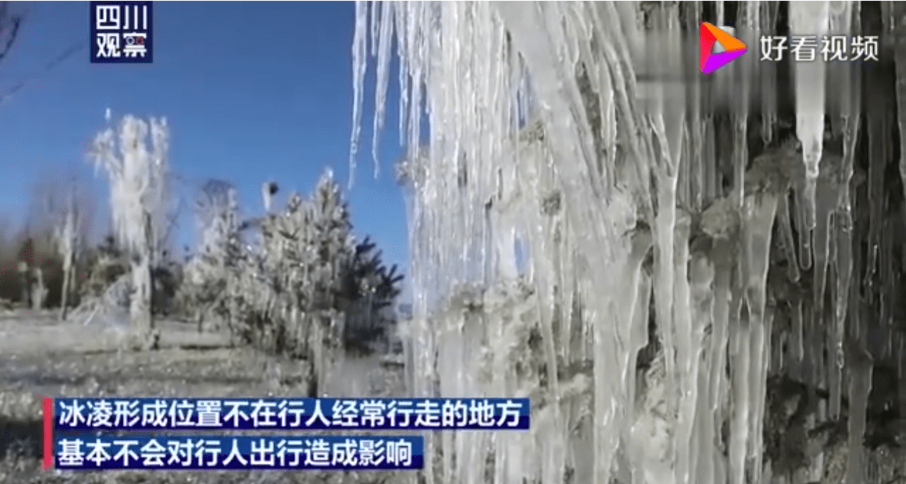 “冰林”构成方位并不是行人经常行走的地方,基本不会对行人出行造成影响。估计只有在新疆、东北这些地方能见到如此罕见的冰凌了吧。就多截几张图供大家关上吧。震撼美景。