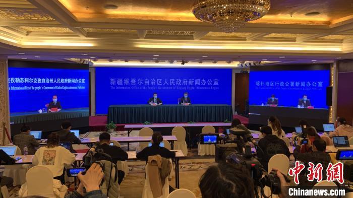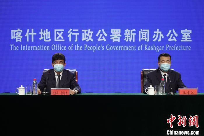 喀什地区相关部门负责人在新闻发布会上通报喀什地区疏附县疫情和防控情况。 汪舟 摄