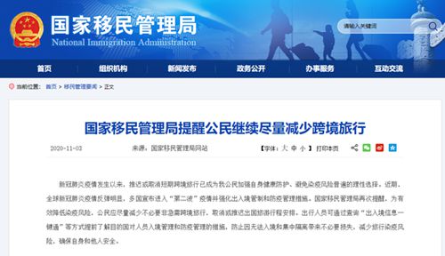 【移民管理局提醒尽量减少跨境旅行】新冠肺炎疫情发生以来,推迟或取消短期跨境旅行已成为我公民加强自身健康防护、避免染疫风险普遍的理性选择。近期,全球新冠肺炎疫情反弹明显,多国宣布进入“第二波”疫情并强化出入境管制和防疫管理措施。国家移民管理局再次提醒,为有效降低染疫风险,公民应尽量减少不必要非急需跨境旅行,取消或推迟出国旅游行程安排。出行人员可通过查询“出入境信息一键通”等方式提前了解目的国对人员入境管理和防疫管理的措施,防止因无法入境和集中隔离带来不必要损失,减少旅行染疫风险,确保自身和他人安全。