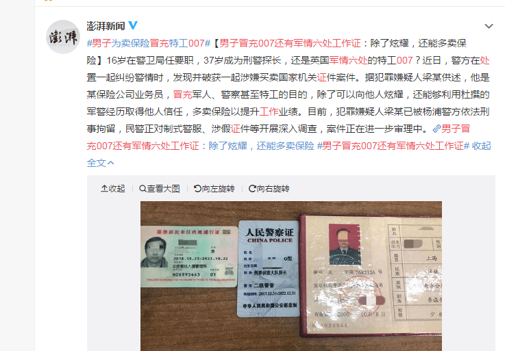 原标题:男子冒充007还有军情六处工作证:除了炫耀,还能多卖保险