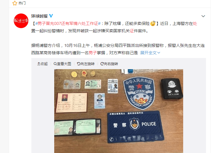上海警方在处置一起纠纷警情时,发现并破获一起涉嫌买卖国家机关证件案件。