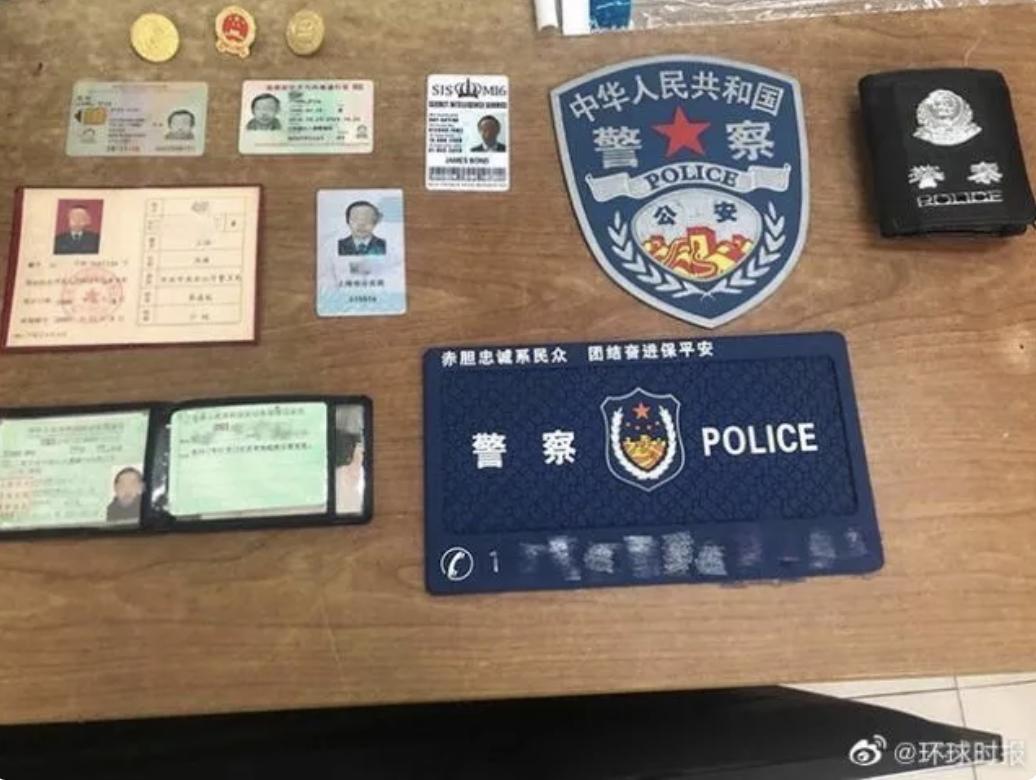 民警现场询问过程中,发现梁某当日驾驶的私家车内放有军警标识的摆件,随即检查车辆,查获制式警服和军官证、警察证、港澳通行证等若干证件。除此之外,还有一张印有名为詹姆斯邦德、代号007的英国军情六处工作证。