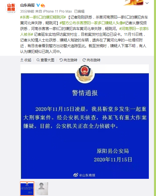 原标题:记者刚刚获悉,杀害河南原阳一家6口的嫌犯弃车黄河北岸失踪,疑跳河