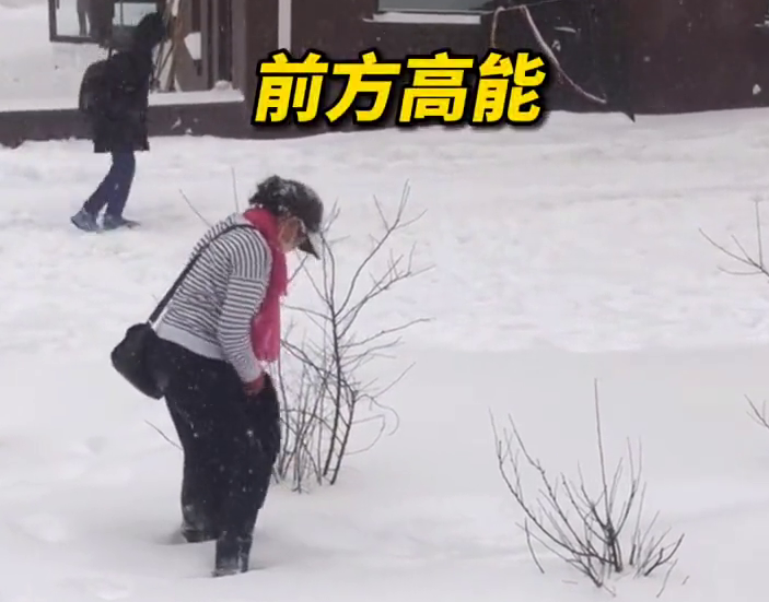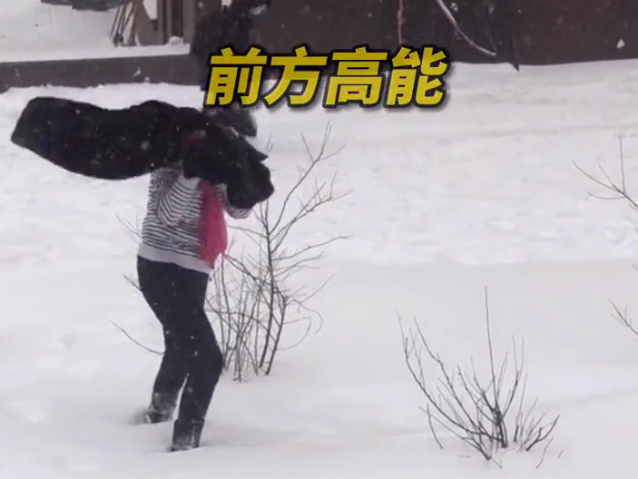 只见大妈先是拿起衣服在雪中用力摔打