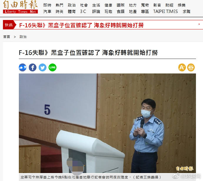原标题:快讯!台“空军司令”:失联台军F-16战机黑匣子位置已被确认