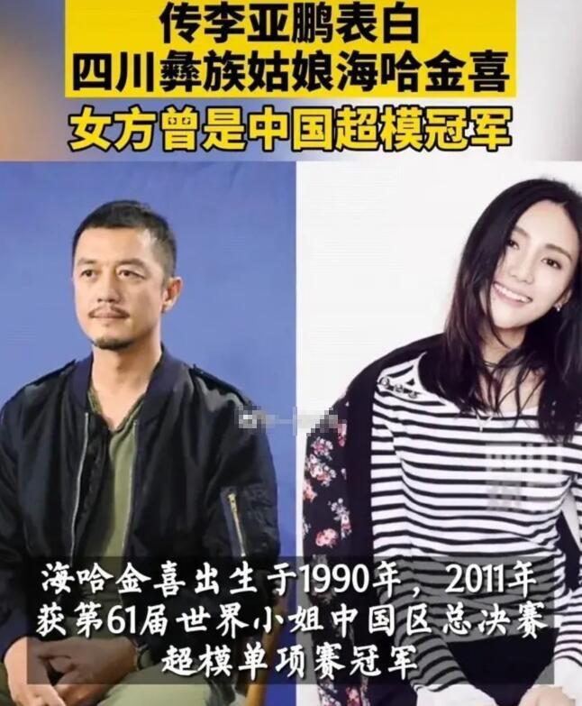 随后,女方身份曝光,是少数名族——彝族的姑娘,名叫海哈金喜,出生于1990年,比李亚鹏小19岁,海哈金喜也是一名演员,2017年,曾参演爱情公路喜剧电影《胡杨的夏天》,不过她还有另一层身份,那便是超模,曾在2011年9月4日,获得第61届世界小姐中国区总决赛冠军!