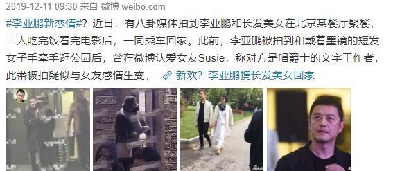 当时李亚鹏曾大方承认恋情,透露女方是一位喜欢唱唱爵士的文字工作者,网上也曾曝光女方名叫Susie,而如今李亚鹏新恋情公开,Susie疑似成为过去式。