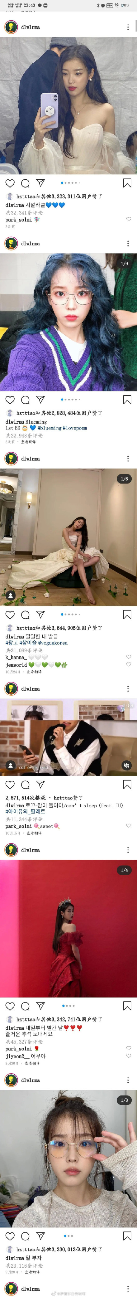ins也只关注了她一个韩国女星,而且iu每条动态黄子韬都点赞。应该是真的喜欢,不过iu这么漂亮也是情理之中。