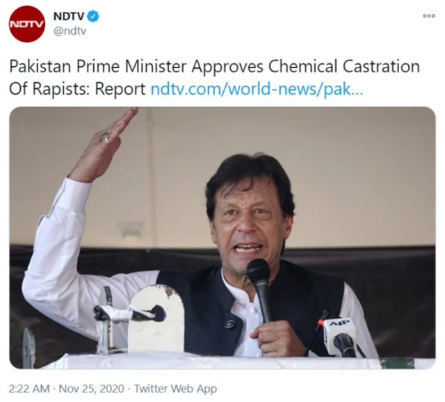 《印度时报》、新德里电视台等印度主流媒体在不久后纷纷报道了这一消息,新德里电视台以《巴基斯坦总理批准化学阉割强奸犯》为题进行报道,引得一众印度网友在评论区激烈讨论。不少网友表示,巴基斯坦的这一决定非常明智,称这是对心理变态和强奸犯最好的威慑,他们还建议印度也效仿这一举措;但也有网友认为量刑过轻,应当判处罪犯死刑;还有不少网友直接自暴自弃,开启了“自黑模式”。