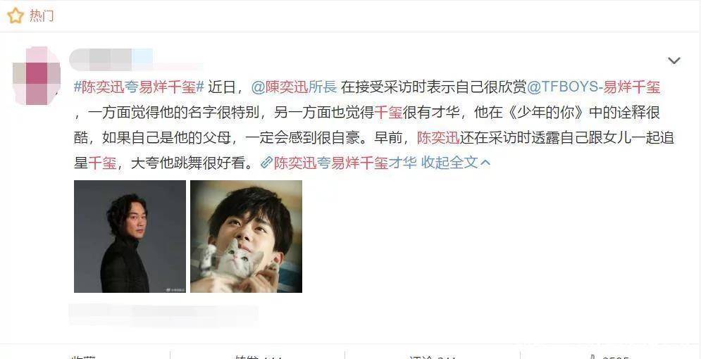 此次陈奕迅又是从自己的角度出发,表扬了易烊千玺。