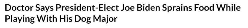 原标题:拜登与狗玩耍时滑倒并扭伤脚踝,美国总统当选办公室发布紧急声明