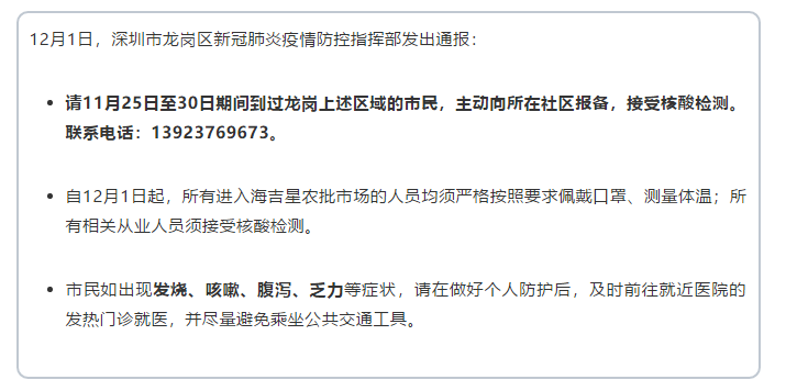 12月1日,深圳新增一例新冠肺炎输入病例,为一名港籍的深港跨境货车司机。