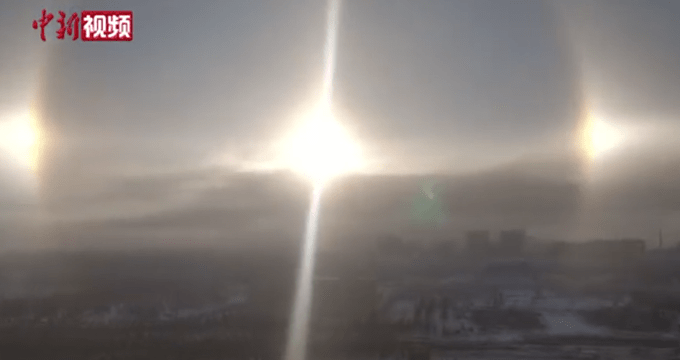 11月4日10时30分许,内蒙古通辽市科左后旗甘旗卡镇上空出现了 三个太阳 。当地气象部门表示,天空同时出现三个太阳的一种奇异的光学现象,由整齐排列在空中的冰柱折射所形成,称为幻日。2019年12月31日8时左右,吉林扶余市上空曾出现过3个 太阳 。