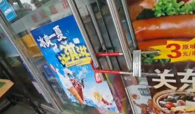 同时,距离医院一墙之隔的商铺现已关门。