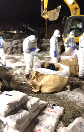 ▲ 滋贺县将1万余只鸡埋入土中(日本时事通信社)