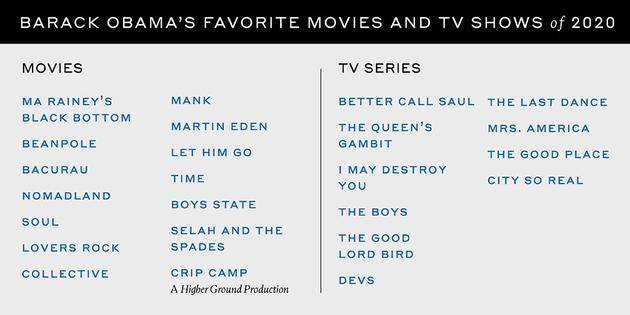 搜狐娱乐讯 美国前总统巴拉克·奥巴马按惯例公布“年度最爱的影视作品”清单,今年他最喜欢的包括《无依之地》《曼克》《后翼弃兵》《黑袍纠察队》等。
