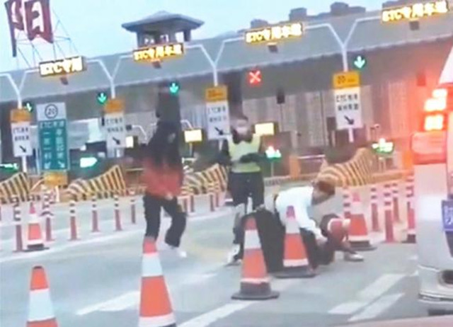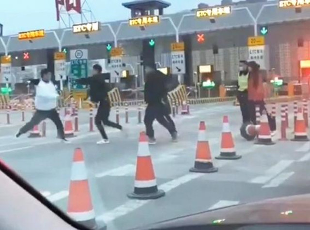 12月16日,陕西咸阳。在高速路收费站口,一白衣男子和两名黑衣男子发生殴打,白衣男子10秒KO黑衣两人。