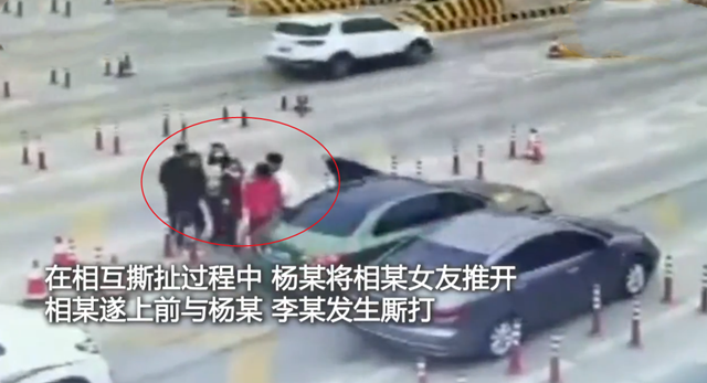 监控显示,起初双方因行车问题,两名黑衣男子将白衣男子用力从其车内拉下后,双方不断推搡。其间,两名黑衣男子中一人还将白衣男子用手卡住其脖子,按在驾驶座一侧的车门上。之后,双方争执不断,且一直对白衣男子有肢体进攻。白衣男子几乎从未还手。