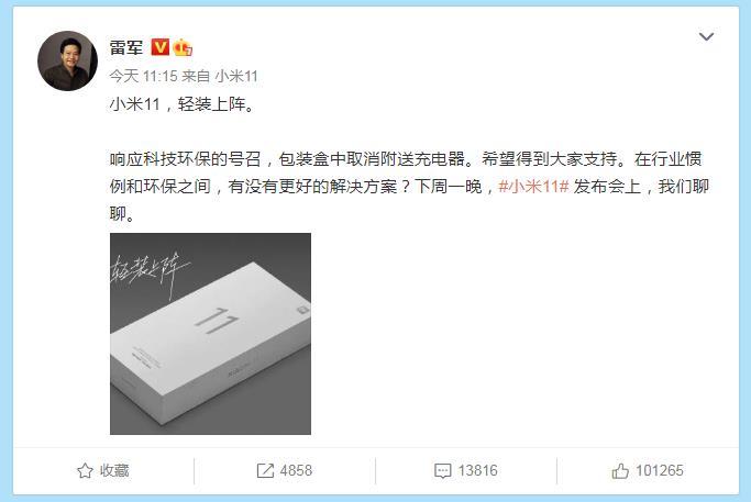 根据雷军最新的消息:"响应科技环保的号召,包装盒中取消附送充电器。希望得到大家支持。",这意味着,小米11系列将要效仿苹果最新发布的iPhone 12系列,取消充电器的配备了,对此米粉似乎不愿意了。