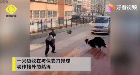 (原标题:边牧打排球战胜小区保安)