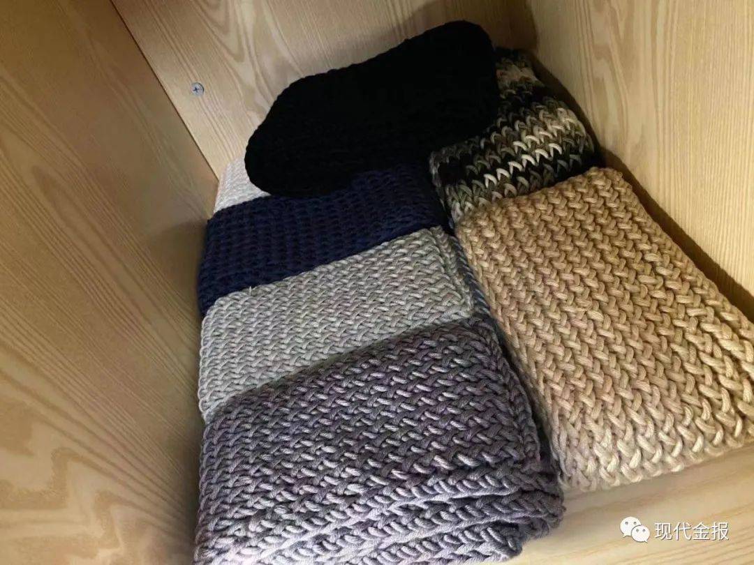 “刚开始对着一团团毛线手足无措,网上教程是学会了,可是自己动手,就抓瞎了。”姚诚诚说,第一天大家织了拆,拆了织,平均每个人都织坏了两三条,才慢慢上手。