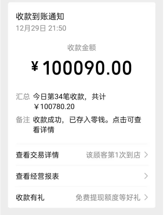 竟然是一笔10万零90元的进账