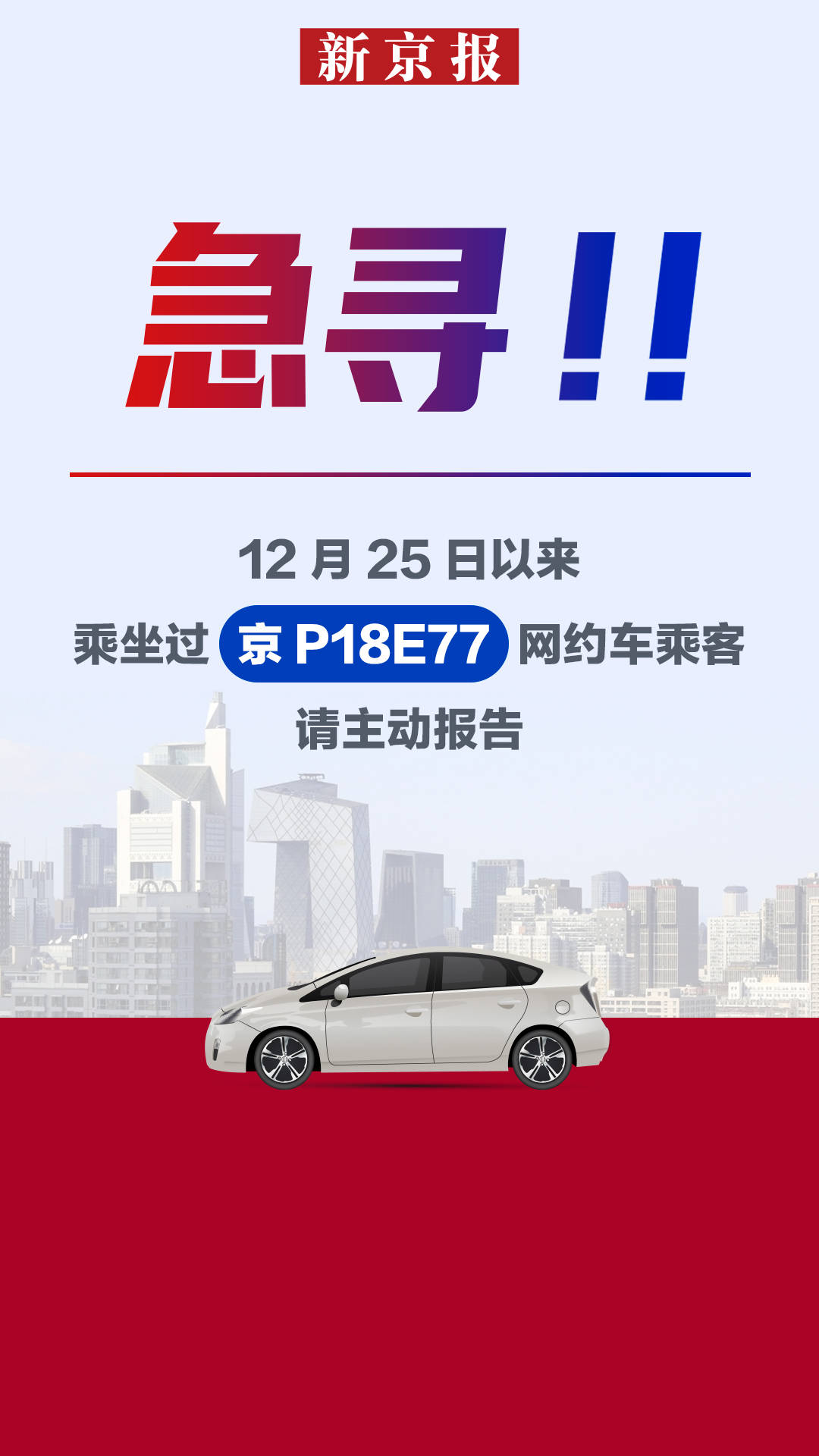 北京市疾控:急寻曾乘坐京P18E77网约车者