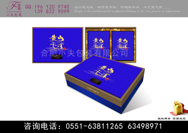 材质及工艺:盒盖为特种纸烫金印刷后,裱糊工业纸板,盒顶部为蓝色真丝布印刷烫金,盒底为蓝色真丝布烫哑金后,裱糊工业纸板。