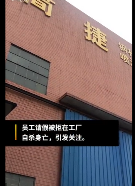 据媒体9月21日报道,近期,广东佛山,员工请假被拒在工厂自杀身亡,引发社会关注。