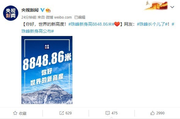 8848.86米!珠峰新高程公布!12 月 8 日消息 根据新华视点的消息,珠穆朗玛峰最新高程宣布——8848.86 米。随着“8848.86米!珠峰新高程公布”,很多网友纷纷调侃珠峰长高了。据悉此次珠峰测高综合运用了多种传统和现代测量技术,其中,全球导航卫星系统(GNSS)卫星测量是重要一环,并以我国北斗卫星导航系统数据为主,更为精准。