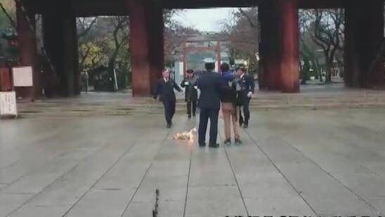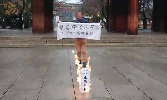 2018年12月12日,包括NHK、共同社在内的日本媒体发布消息称,当天上午,有中国公民在日本靖国神社门前燃烧“报纸”。共同社当时援引东京警视厅消息称,涉事的人为一男一女。当时现场画面显示,该中国男子火烧象征战犯东条英机的纸制“牌位”,手持“勿忘南京大屠杀”标语大喊“打倒军国主义、勿忘南京大屠杀、日本政府必须道歉。”共同社援引东京警视厅消息称,男子因“侵入建筑物”的嫌疑被警方逮捕,同行女子仍在接受警方询问。相关搜查人士称,男女二人都是香港人。返回搜狐,查看更多